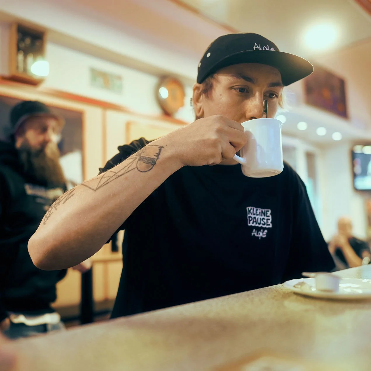 Für die gemeinsame Kollektion von Aight und der Kleine Pause entstand ein Editorial-Shooting, das den urbanen Charakter beider Partner visuell zusammenführt. Ziel war es, die neue Kollektion im authentischen Umfeld der Kleinen Pause zu zeigen und den lokalen Bezug sowie die Haltung der Marke klar herauszuarbeiten.